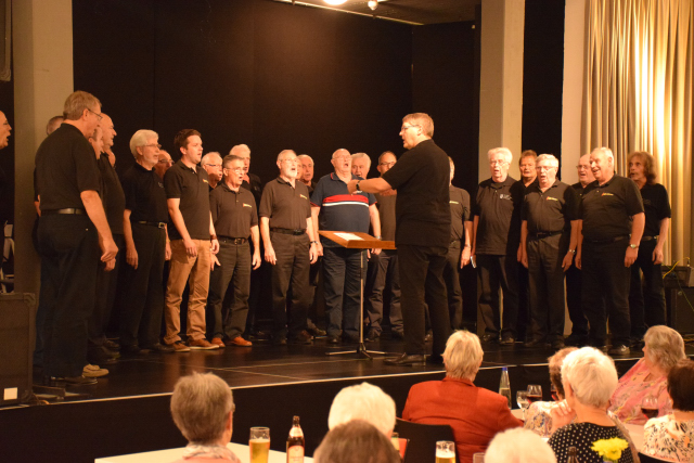 Beide Chöre trugen viele Lieder in mehreren Blöcken bei. Dazwischen sang Solist Heiner deutsche Schlager und Tanzmusik und spielte Keyboard dazu. Der Gastverein unter Leitung seiner Dirigenten Thomas Schmidt und Manfred Feltes sang sehr gut und fast alles auswendig und war im Großen und Ganzen recht textsicher. Als Reverenz gegenüber dem Gastgeber hatten die Gäste vom Rhein eigens ein Weinlied zum Bierlied umgedichtet. Zur Unterhaltung trugen außerdem Chorleiter Vieracker und Sangesbruder Hampel vom Beilngrieser MGV vortrefflich bei, indem der eine launige Anekdoten und hübsch verpackte Witze erzählte und der andere unnachahmlich ein paar Gedichte aus seinem Repertoire vortrug, wie immer auswendig und zum kringeln komisch. Die Bayerischen Beiträge und Anspielungen kamen bei den Gästen vom Rhein augenscheinlich sehr gut an. Trotz begrenztem Platz schwangen zwischenzeitlich einige Beilngrieser und Rheinländer das Tanzbein. Vorsitzender Peter Röll und der Sprecher des Chorgemeinschaft, Jürgen Wilhelm, tauschten Geschenke aus.