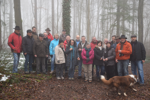 Am Samstag, 9.1.2016, eröffnete der Verein das neue Jahr mit einer Winterwanderung von Beilngries nach Haunstetten. Die Beteiligung seitens der Sänger und ihrer Frauen war sehr gut. Insgesamt fanden sich etwa vierzig Personen beim Hofmetzger Dexl ein. Knapp die Hälfte davon war vom Netto-Parkplatz in Beilngries aufgebrochen. Einige Hirschberger stießen auf dem Weg noch dazu. Erika Röll hatte einen Schnaps für alle (außer den Hund) zur Stärkung dabei. Zum Wärmen war er nicht nötig, denn der Winter zeigte sich nach wie vor ungewöhnlich warm und schneefrei sowieso.