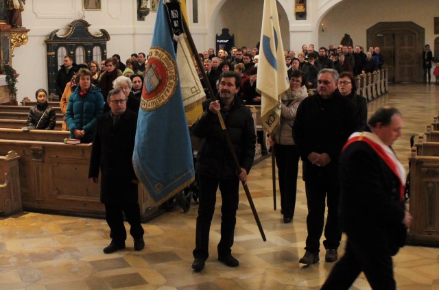 Am Sonntag, 28.2.2016, entsandte der MGV eine Fahnenabordnung zum Patrozinium der Stadtpfarrkirche Sankt Walburga. Neben Fähnrich Raphael Schmalz waren Michael Gilch und Karl Maget Fahnenbegleiter. (Foto: Daniela Hieke)