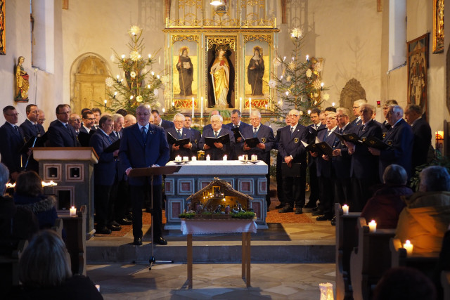 Dienstag, 24.12.2024: Weihnachtssingen an Heiligabend - Sein traditionelles Weihnachtskonzert gab der MGV an Heiligabend in der Friedhofskirche Hl. Luzia. Wie gewohnt, führte Chorleiter Alois Vieracker durch das Programm, wies zunächst darauf hin, dass das Konzert seit jeher den verstorbenen Mitgliedern und Angehörigen ... lesen sie hier mehr