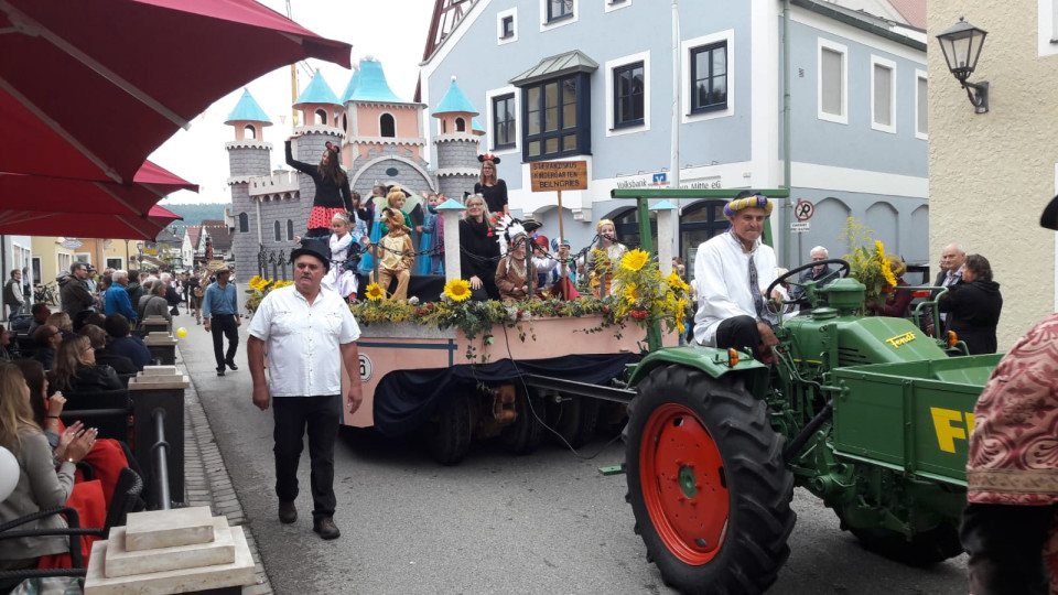 Beilngries, Sonntag, 2.9.2018: "Eindrücke von Orten auf der ganzen Welt und darüber hinaus haben Tausende von Zuschauern beim diesjährigen Volksfestzug in der Altmühlstadt erhalten. Er ging gestern Nachmittag unter dem Motto ‚Beilngrieser reisen gerne' über die Bühne. Trotz tief hängender Wolken gab es dabei, abgesehen von einem unbedeutenden Schauer, keinen Regen. Ideengeber für die Beiträge der Vereine und Gruppen aus der Großgemeinde war erneut Alois Vieracker." (Donaukurier vom 3.9.2018)